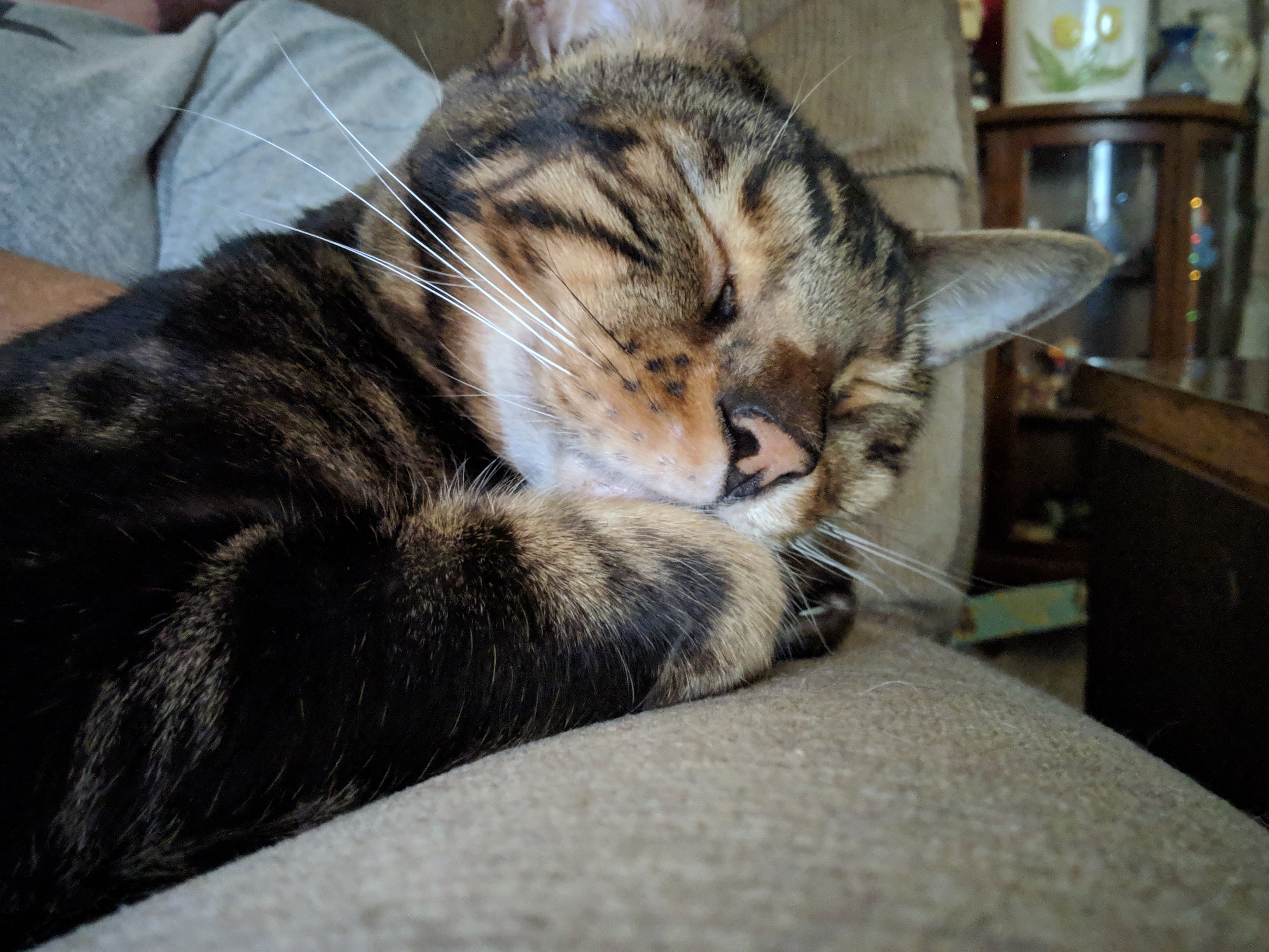I will miss snuggling with my cats. I will miss their personalities, I will miss their meows and their purrs and everything about waking up with fifteen pounds of cat laying on you. I will miss knitting as a full contact sport with these guys, and knowing that they are waiting for me every night.